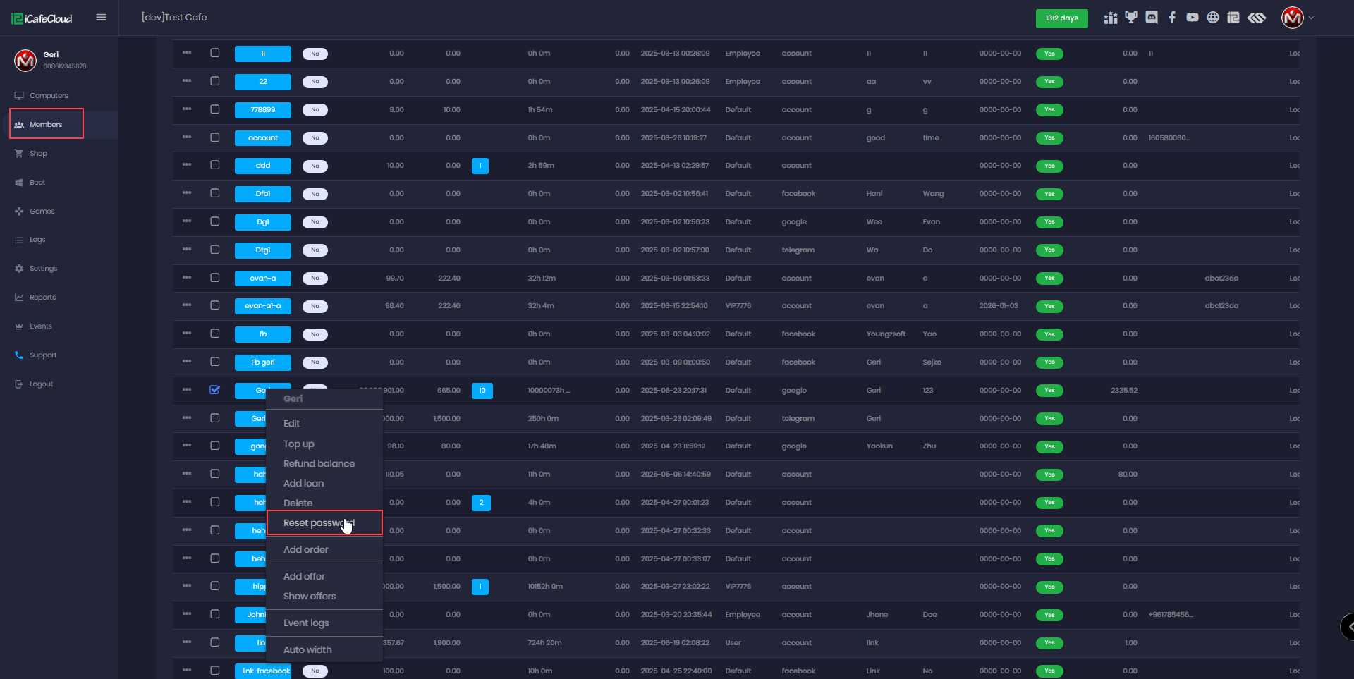 - After selecting your preferred reset method, go to the Member page, select the member account, and click Reset Password(Figure 2)