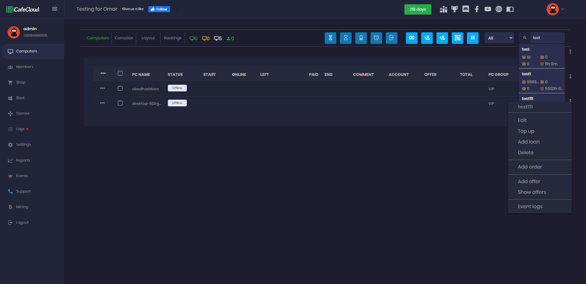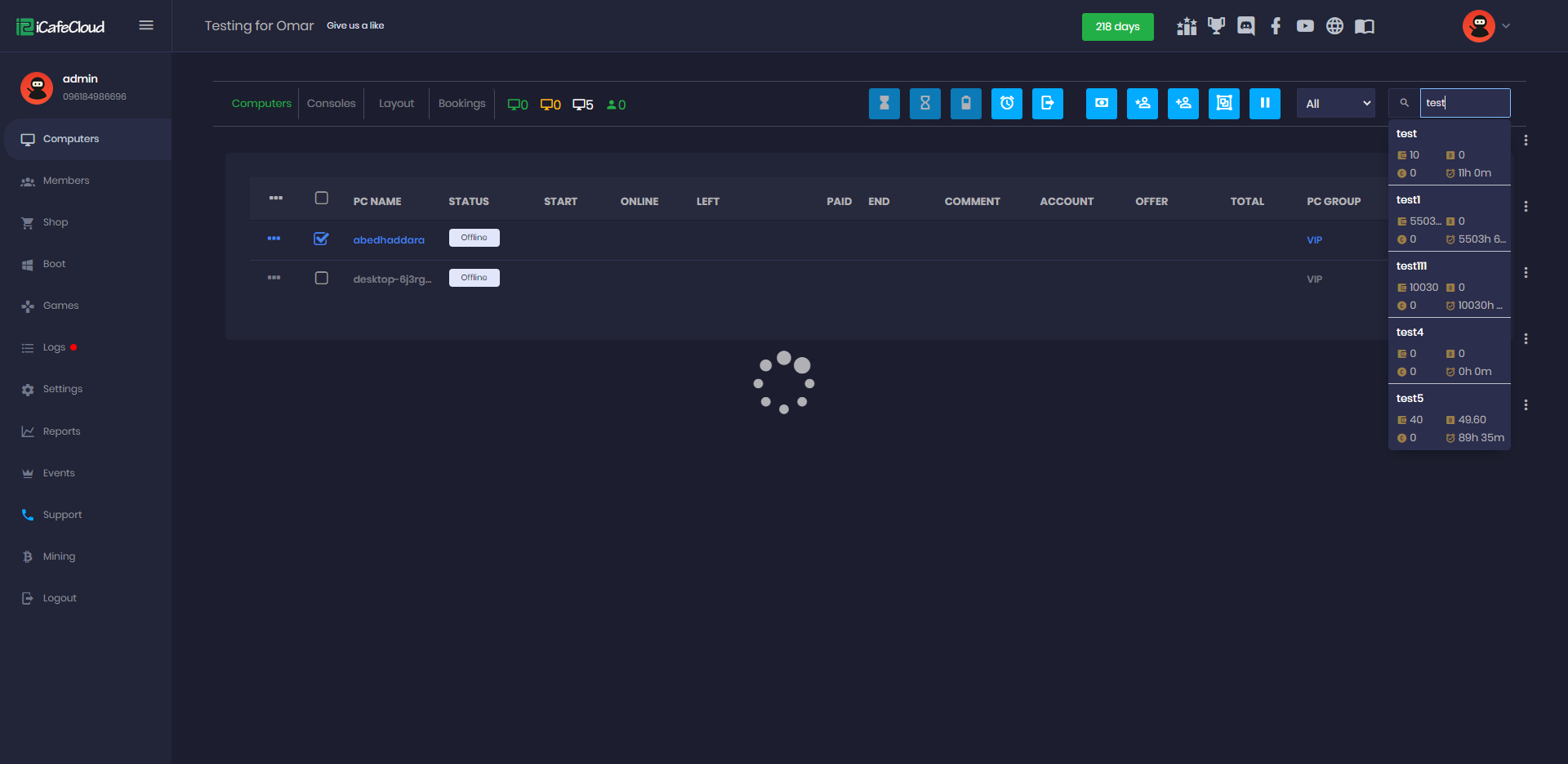 - On the Computers page, navigate to the right side where you'll find a search box. Enter the account name you want to search for and the system will automatically start searching as you type.(Figure 1)