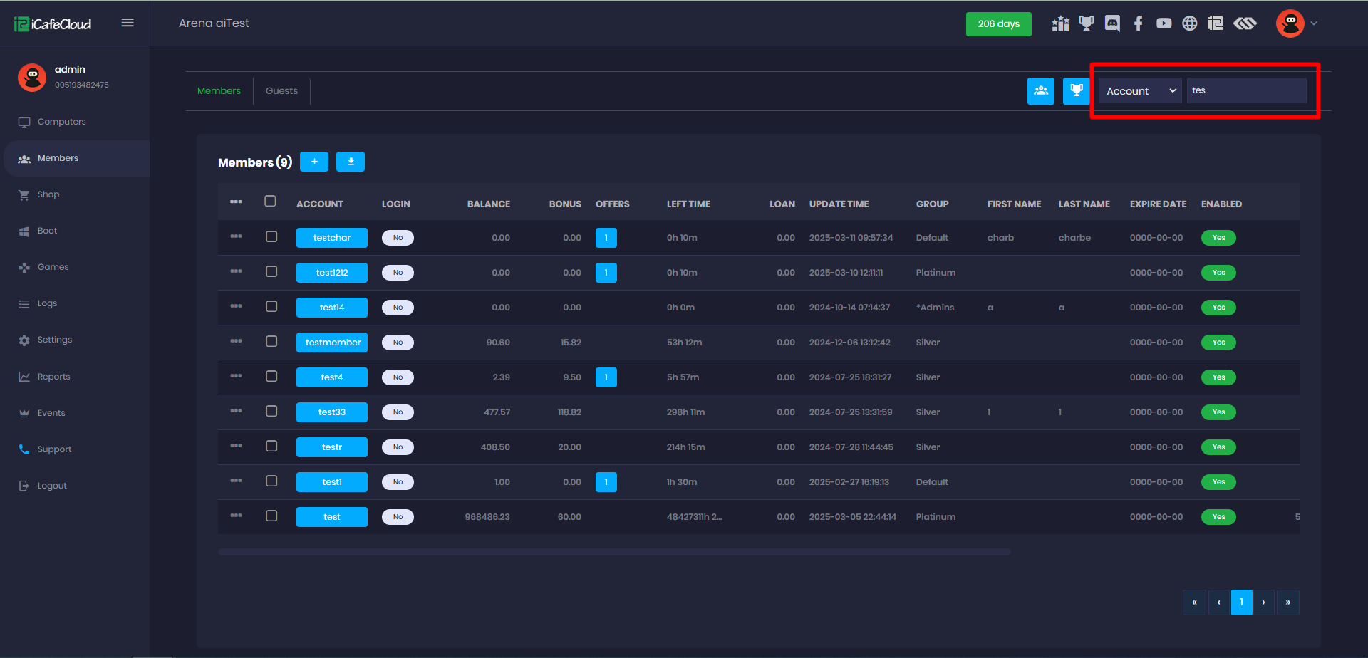 - Use "text" to search for specific account names. For example, "test" will only return the account named test (Figure 6)