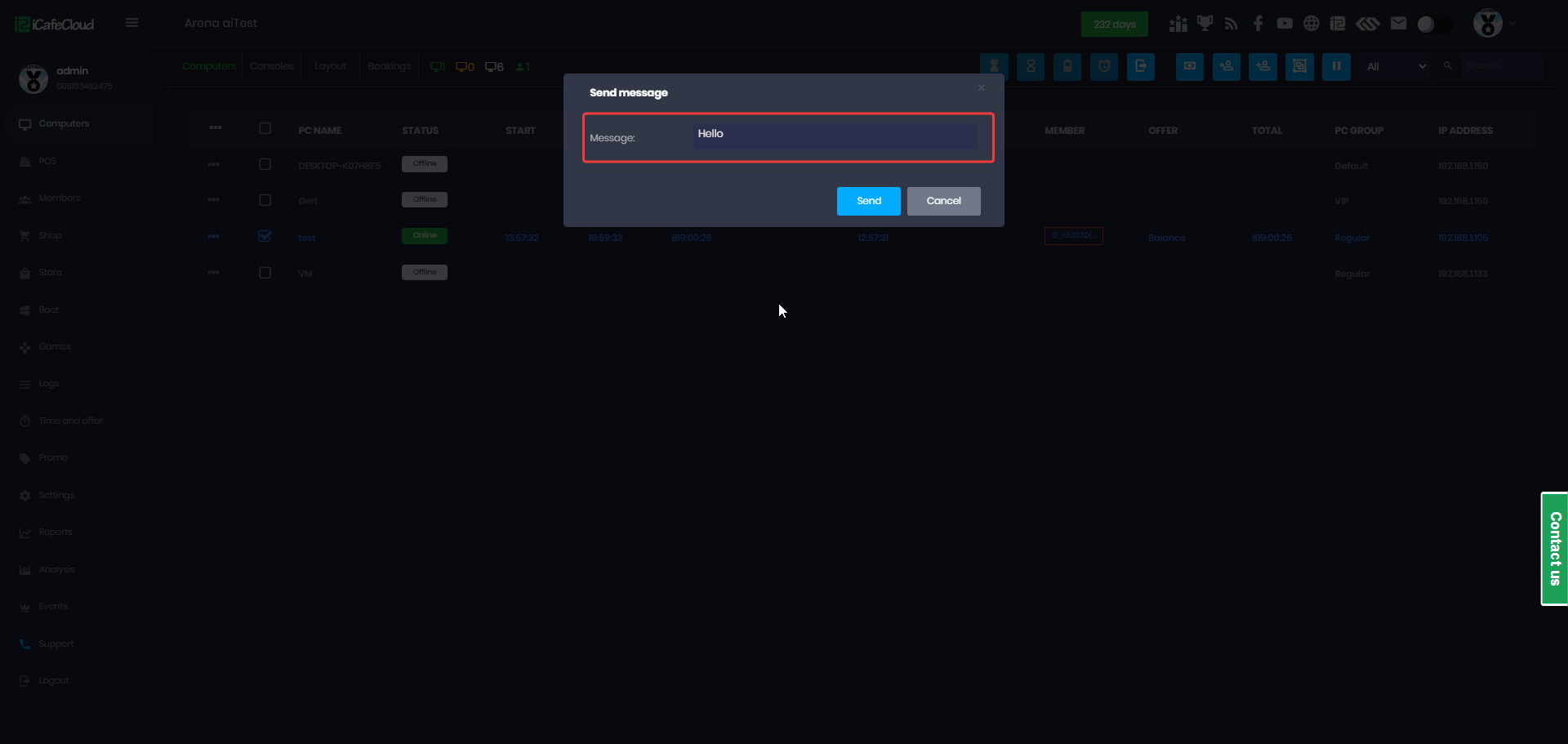 The following allows sending messages from the cloud panel to the client's PC. When the customer receives a message, he will hear a notification about it and the iCafeMenu interface will be inactive until he doesn't hide it.