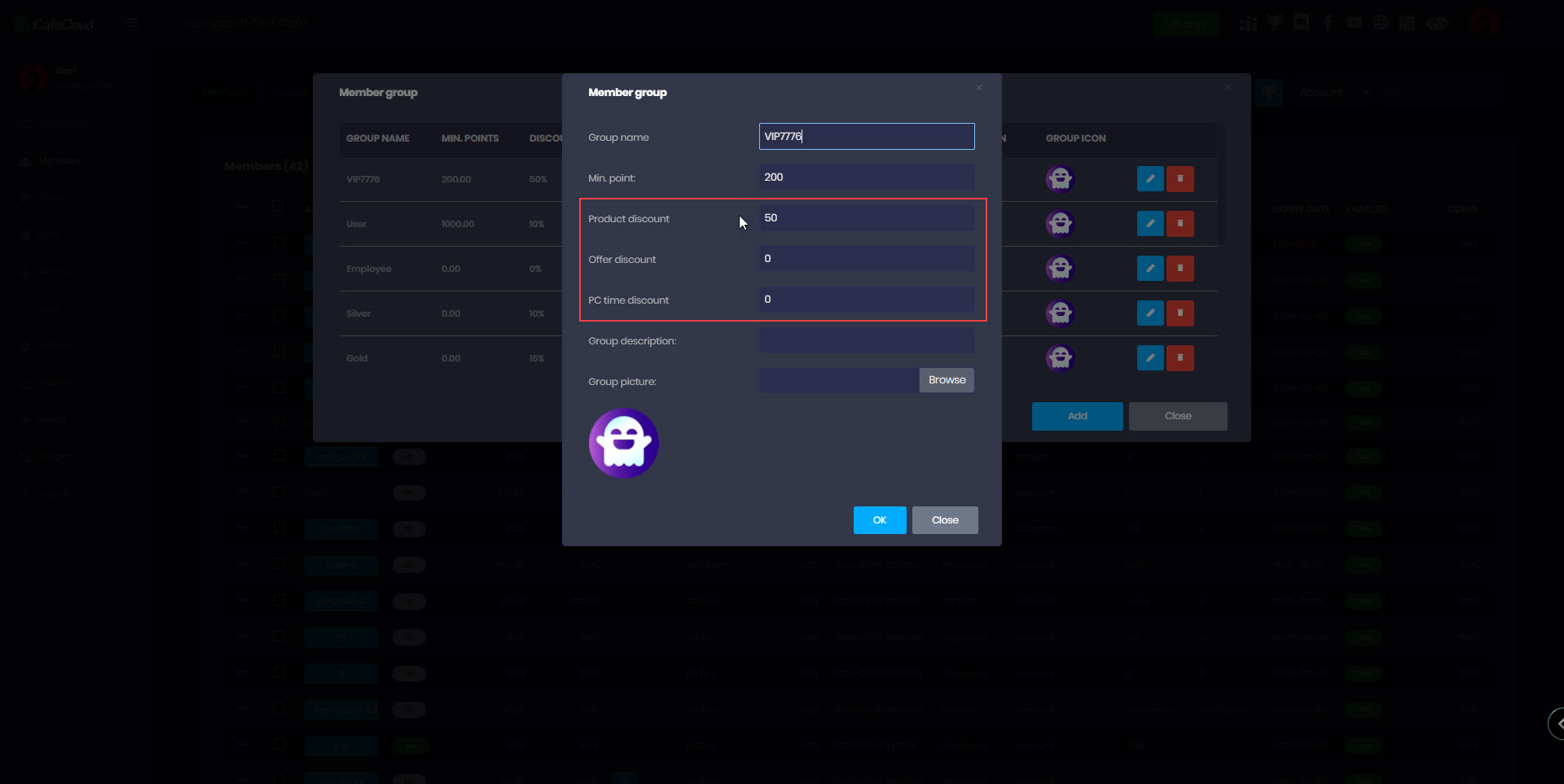 PC Time Discount: Applies a discount to PC time for all members in the group.(Figure 3).