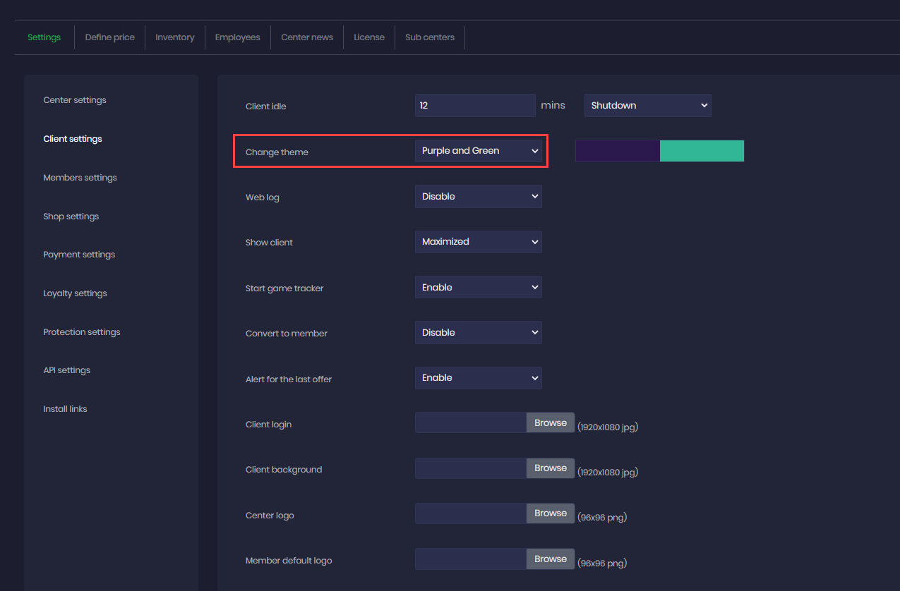 After selecting your preferred color for example we choose ‘’Purple & Green’’ . Turn on your client and now you can see that the color have changed . (Figure 2)