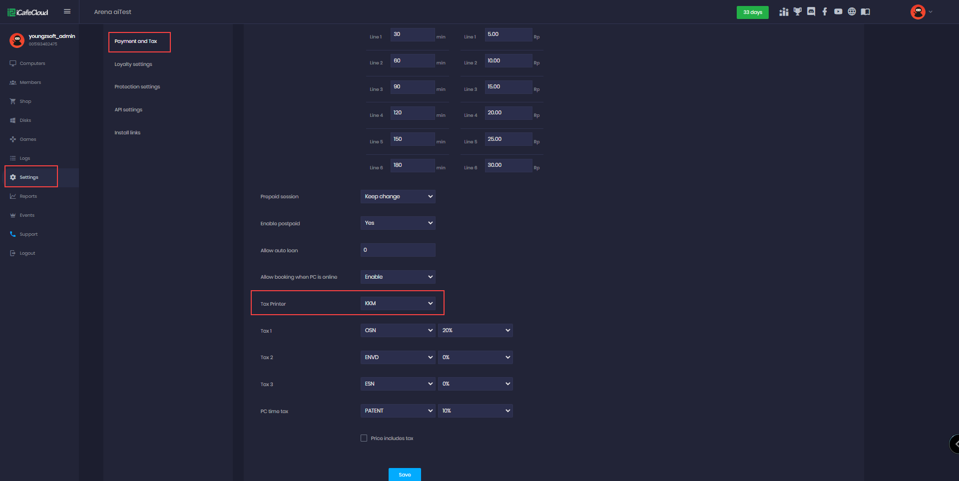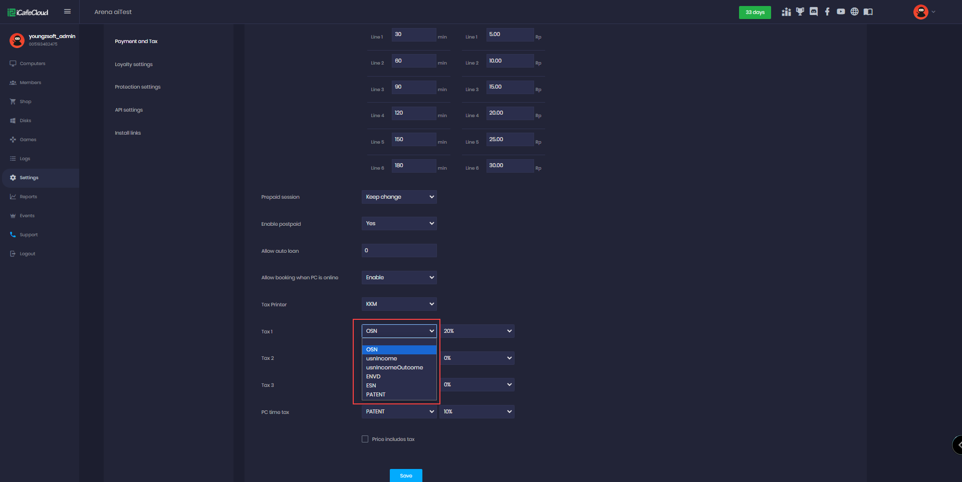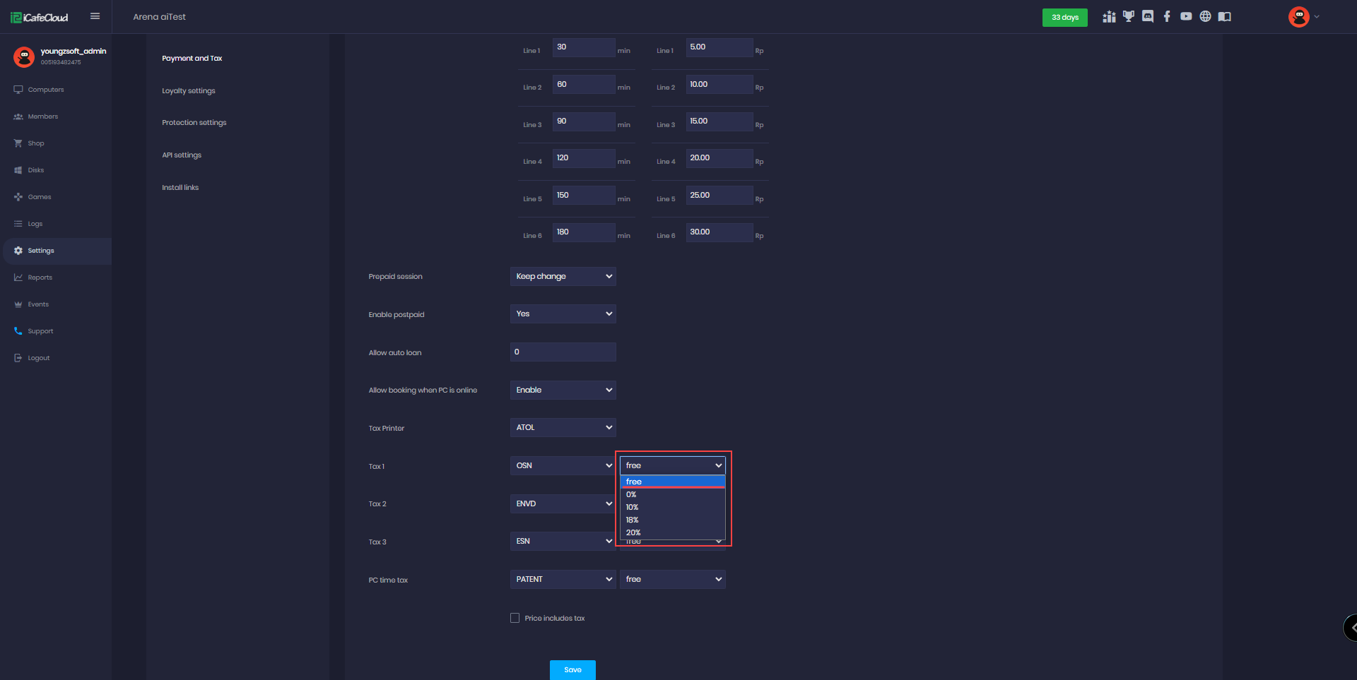- Then the user will be able to select the tax from the dropdown and set the percent of tax in the payment settings (Figure 2).