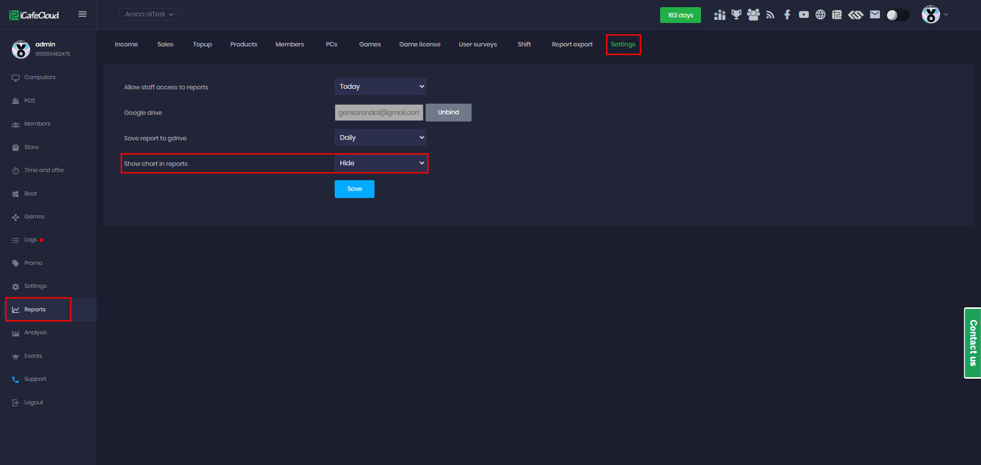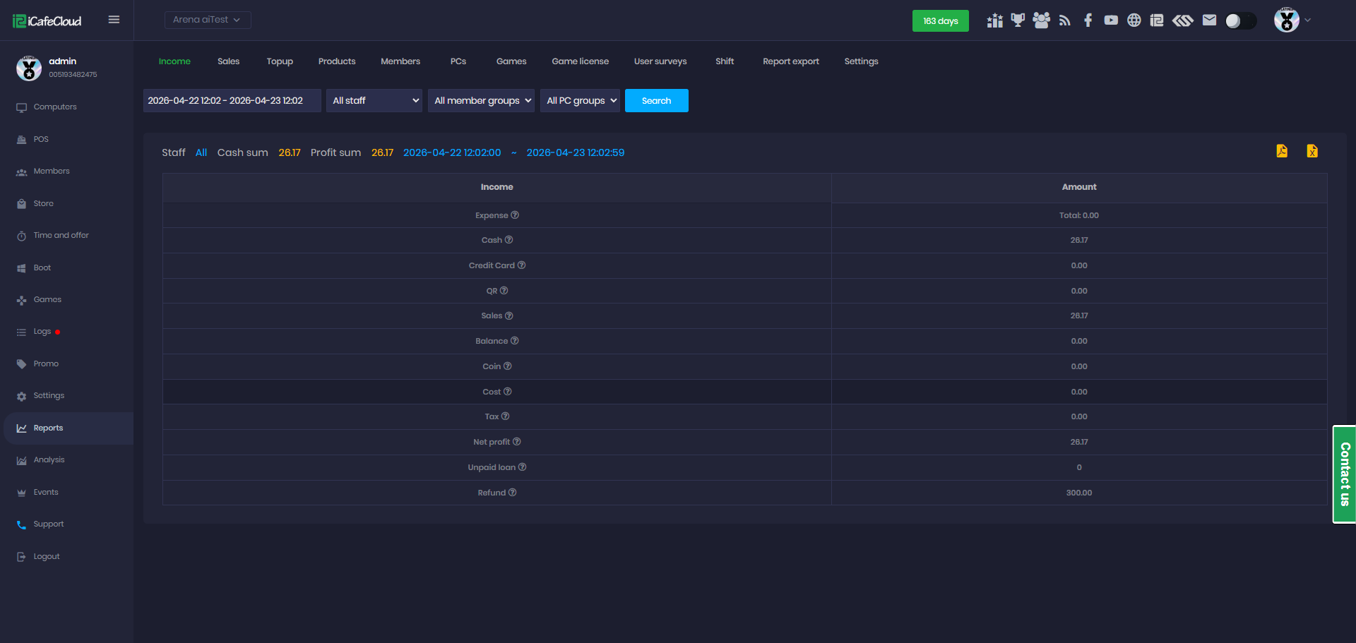 - This setting applies to all report pages including Income, Sales, Topup, Product, Member, PC, Games, and others.