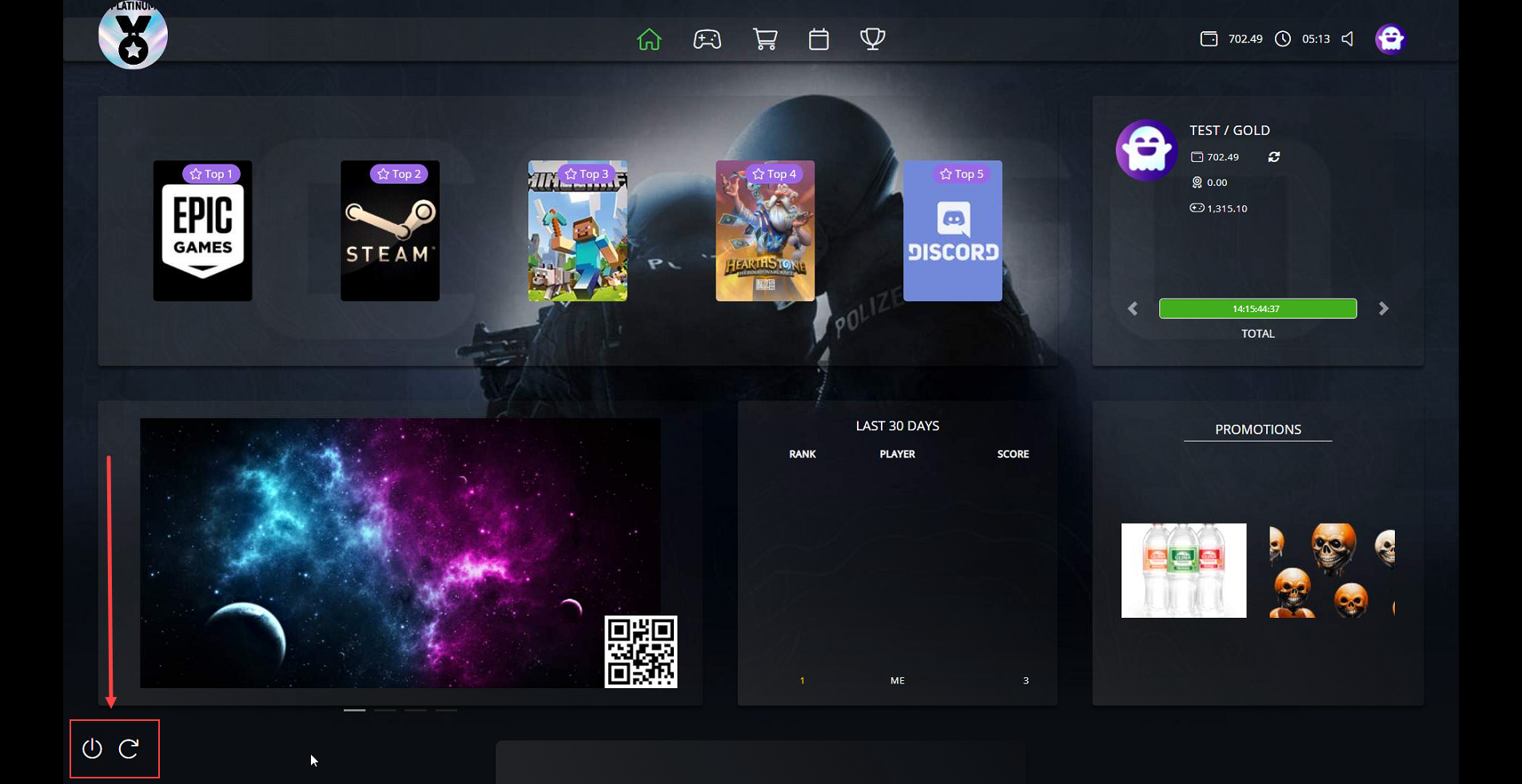 The following explains how to show or hide the power buttons on the client interface, including after login, where both the home page and game page display the two buttons.
