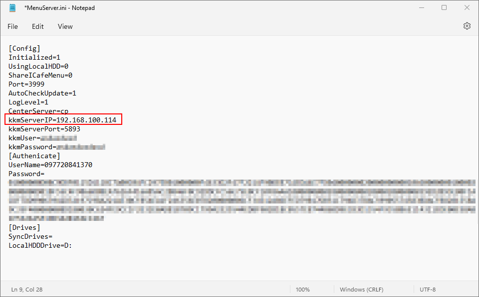 - If your KkmServer is installed in the same computer as the iCafeCloud server, then “kkmServerIP” will be the same as the iCafeCloud Server IP in this example “192.168.100.113”.