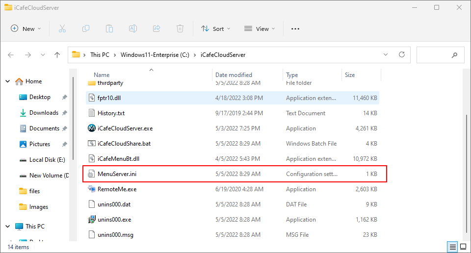 - Now, open the “MenuServer.ini” from the iCafeCloudServer folder (Figure 6).