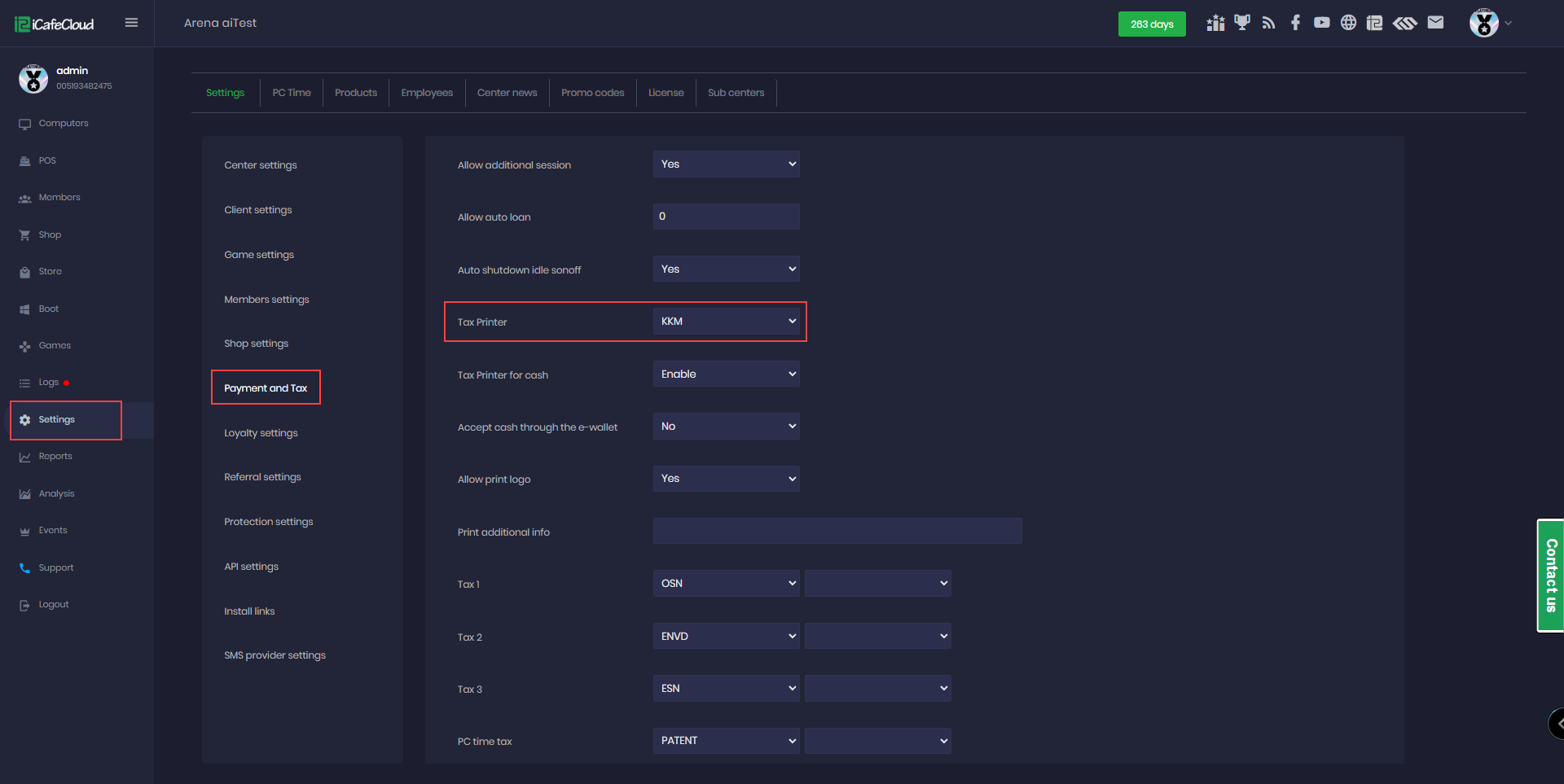 - After installing and configuring KKM, go to Settings → Payment and Tax, and select KKM at Tax Printer.(Figure 5).