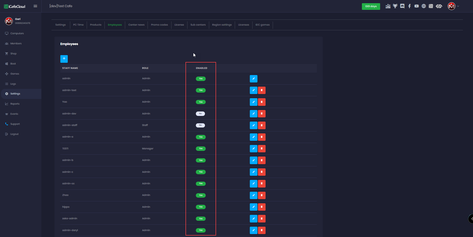 - Go to Settings > Employees, where you will see the "Enable" row highlighted with Yes in green and No in white.(Figure 1)