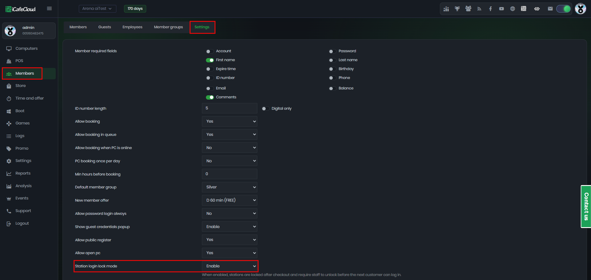- Navigate to Members ? Settings and enable Station Lock Mode. This will automatically lock the PC upon checkout.(Figure 1)