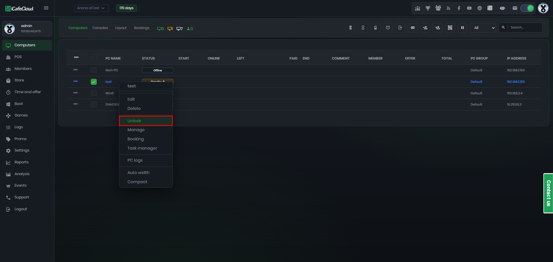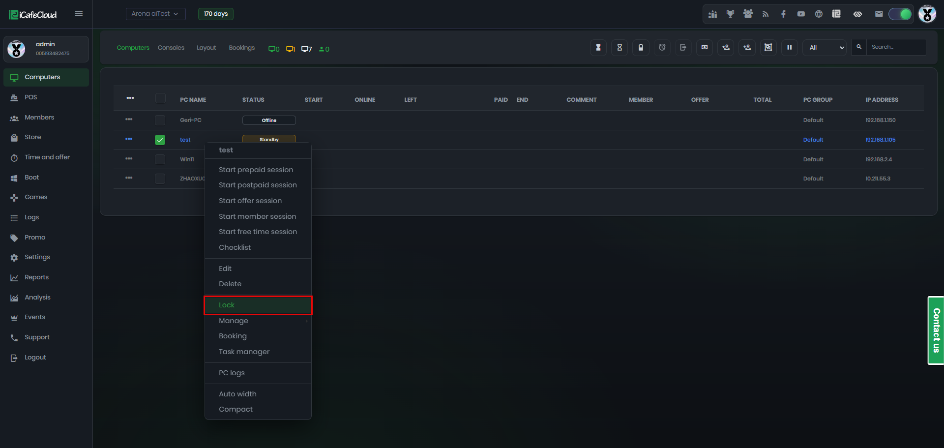 - On the Computers page, open the PC menu and you will see a Lock button that allows you to manually lock the PC. (Figure 2)