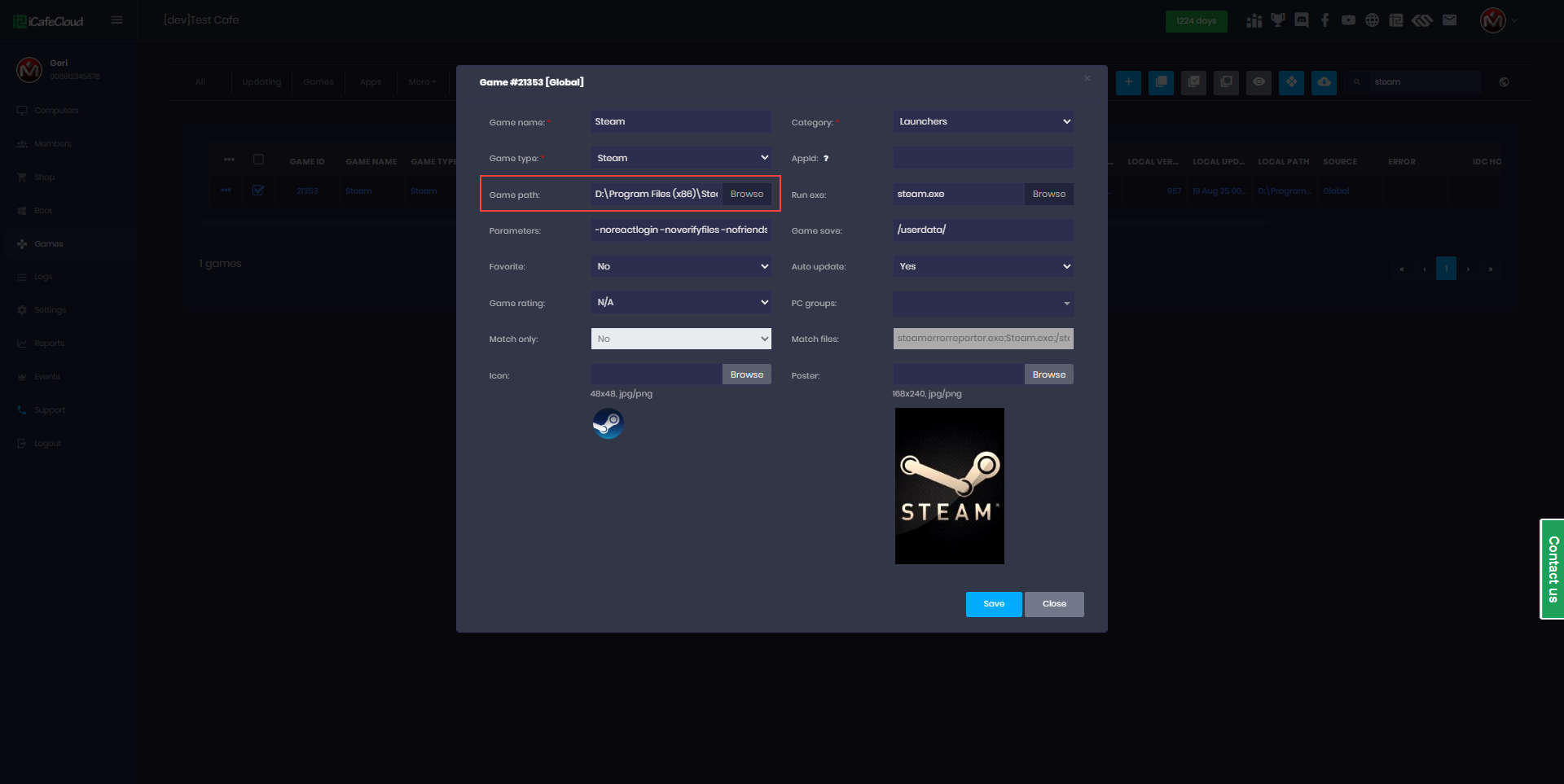 The following explain how to update steam games with script created on icafecloud