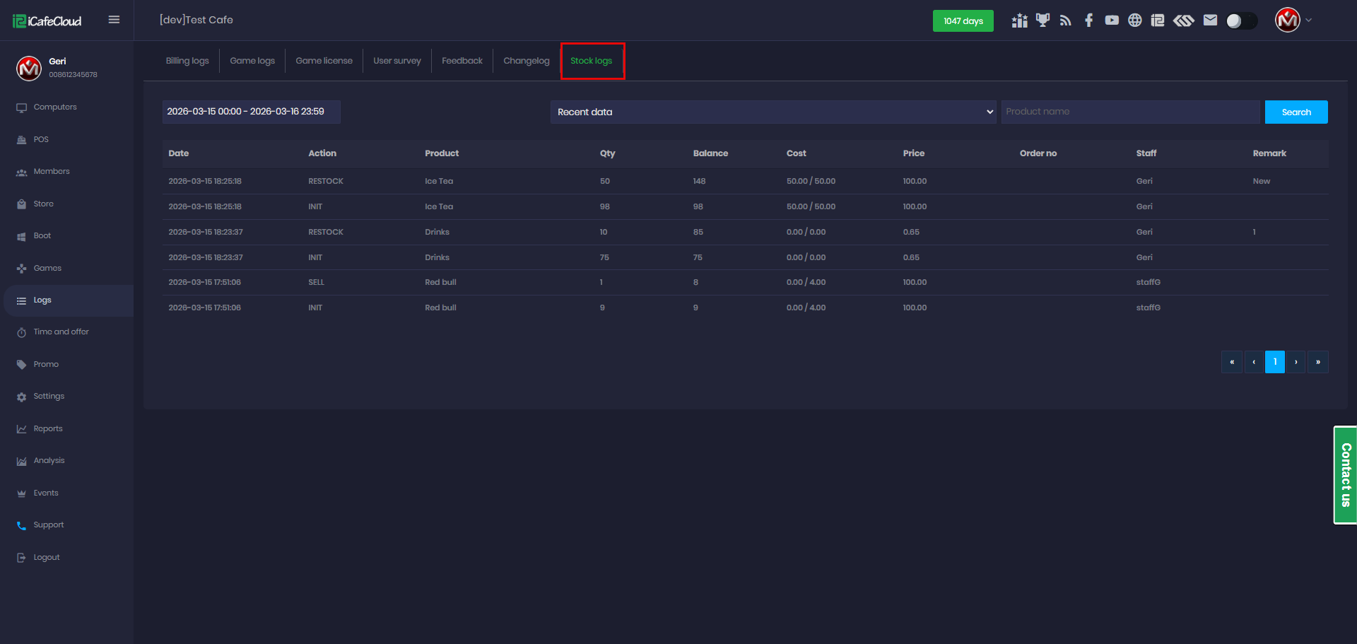 - When a restock is performed, the log will display the initial stock of the product before restocking and the new stock level after the restock.
