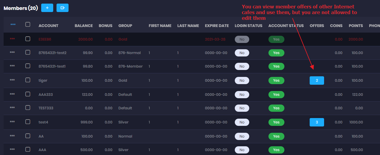- You can see offers purchased by members of the sub-cafe (Figure 3)