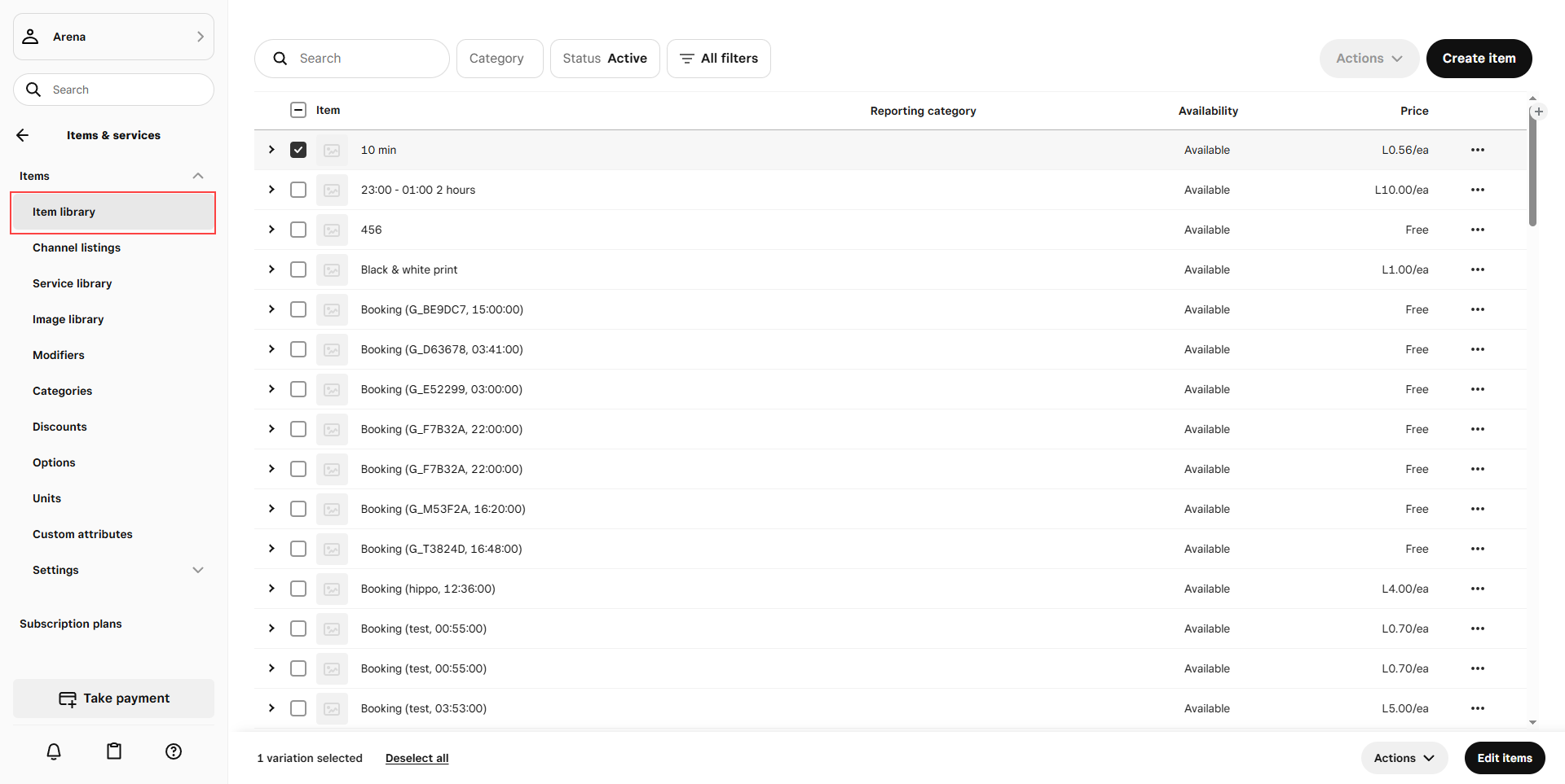 - Go to Square, refresh the page, and click Items on the left-hand panel.Click Item Library at the top left and review the item list. (Figure 10)