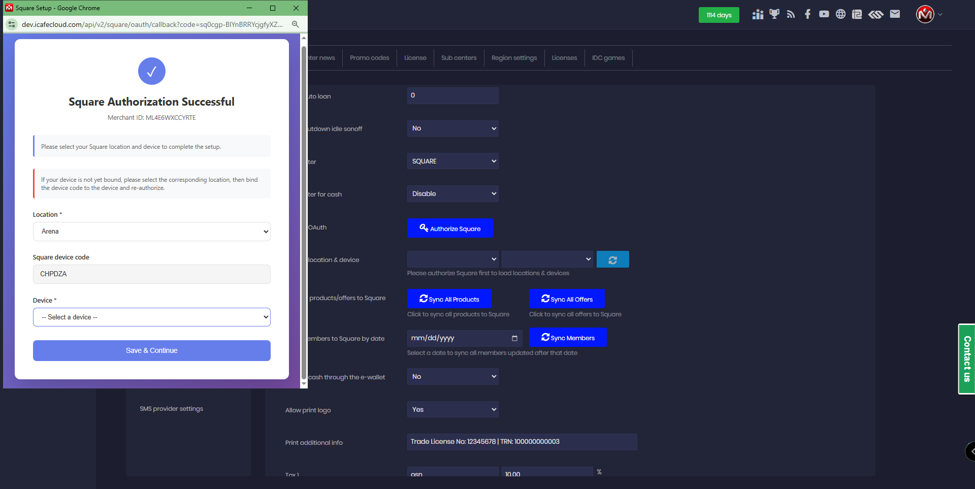 - Once completed, go to the iCafeCloud admin panel, click Settings → Payment and Tax, and then click Square OAuth (Figure 2).