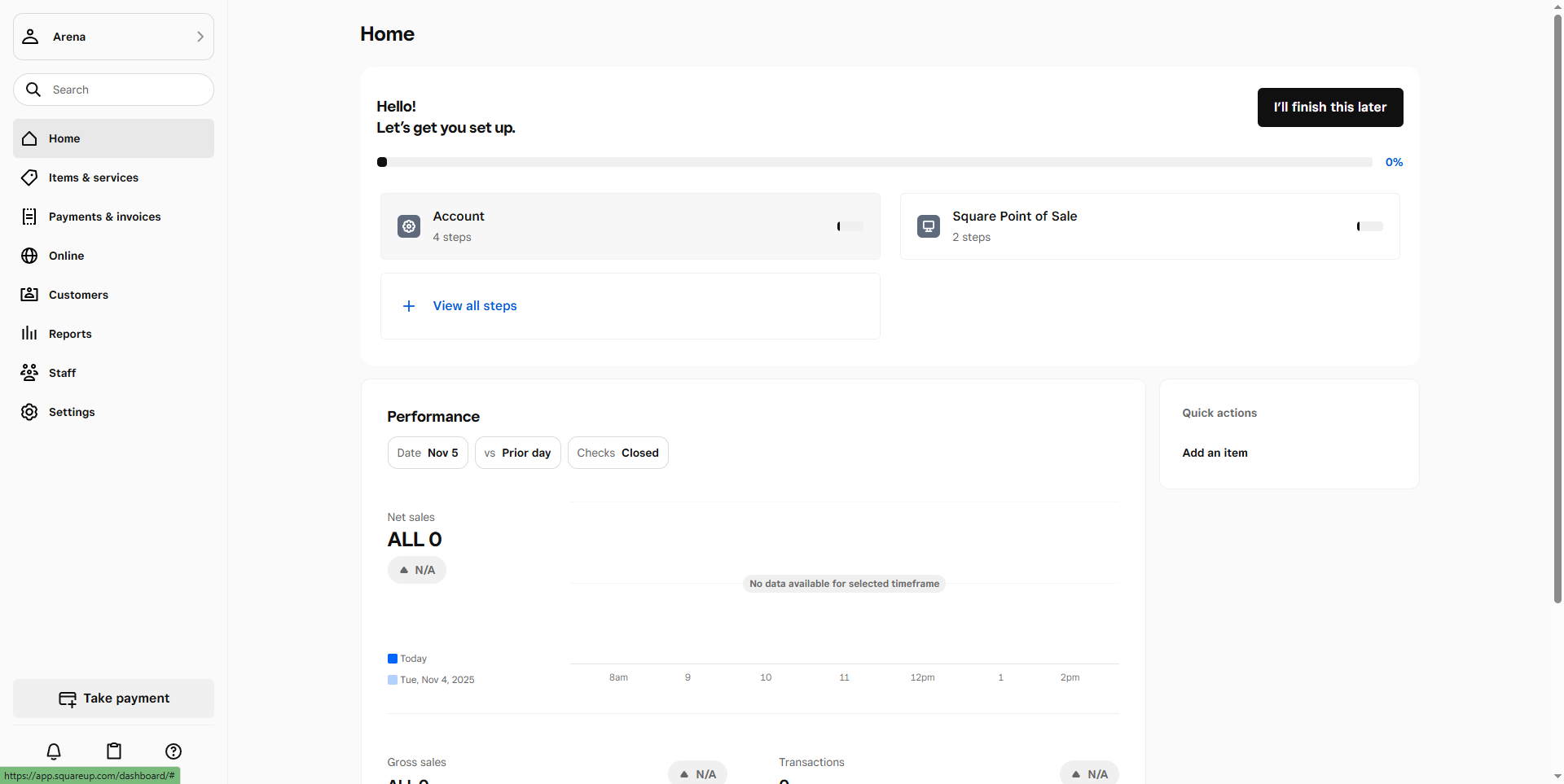 - Start the setup process and complete all the steps to finish setting up your Square account (Figure 1)