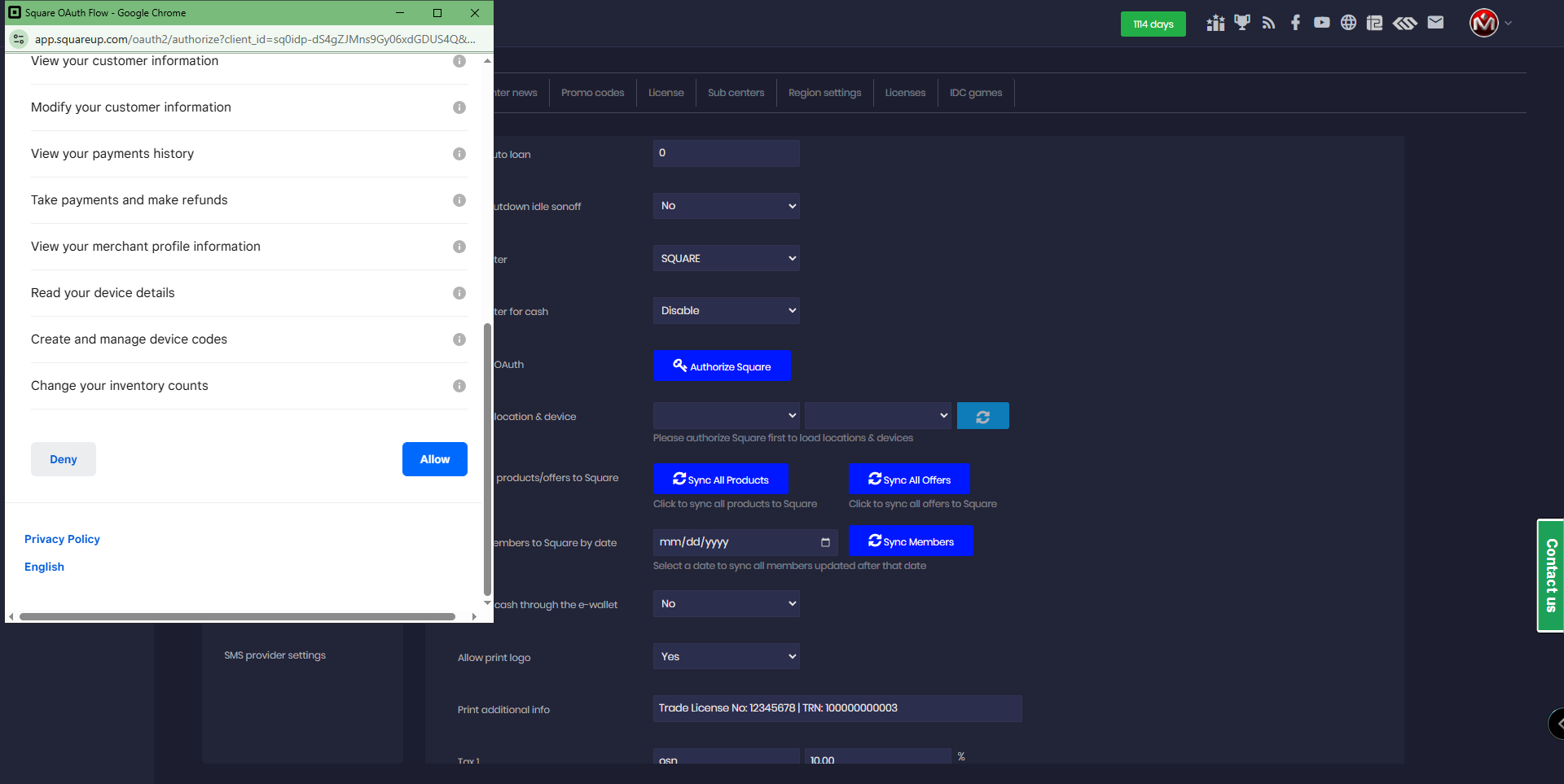 - It will ask for permission to allow iCafeCloud to access your Square account. Click “Allow” (Figure 4).