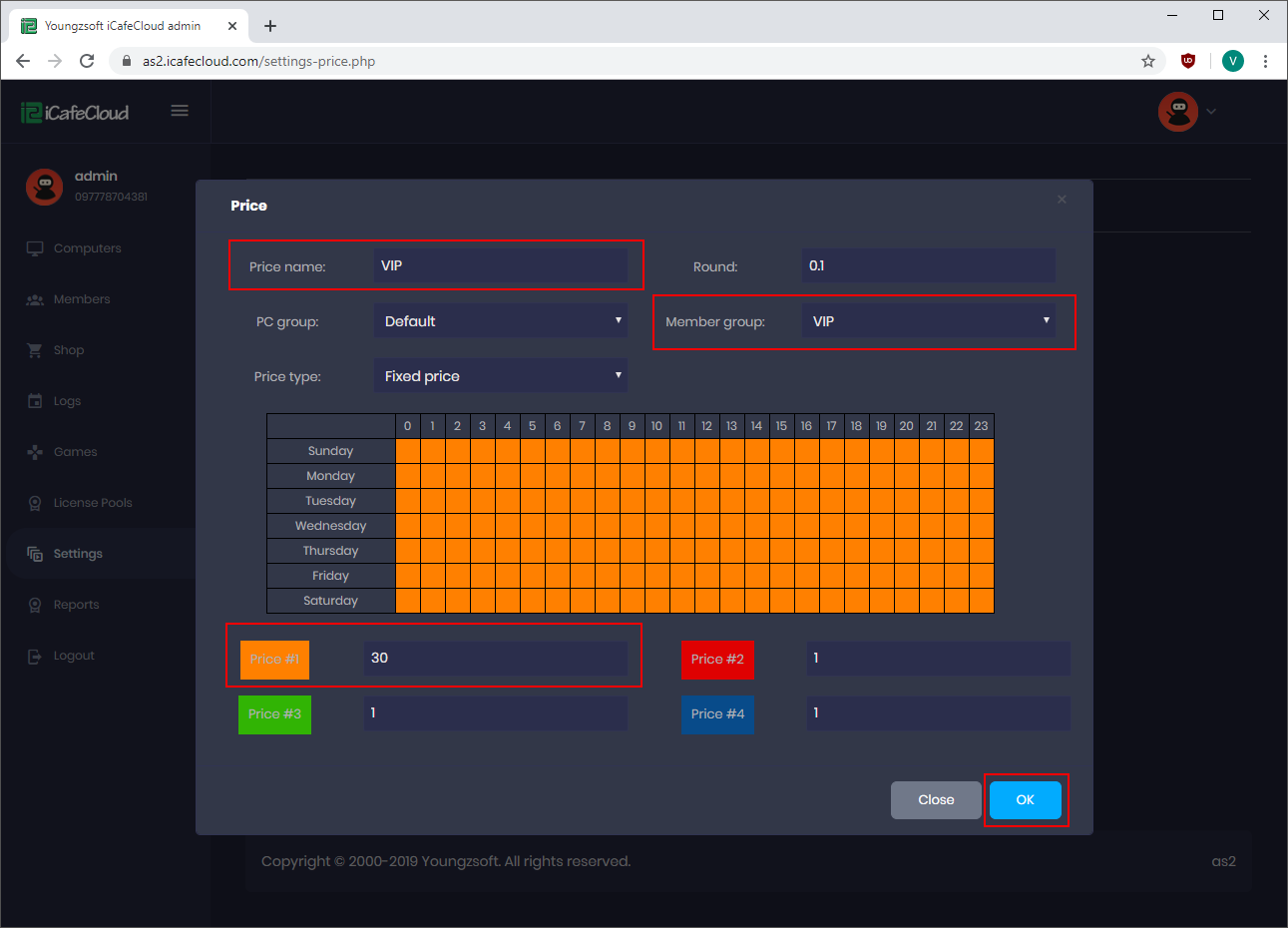 - Pc Time Topup (showing detailed number of pc time topped up + total amount topped up )