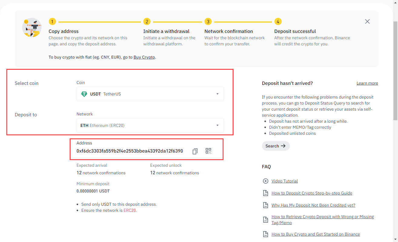 - Select “ETH” in the network field .Then the ERC20 address will be displayed which you can copy and paste(Figure 6).