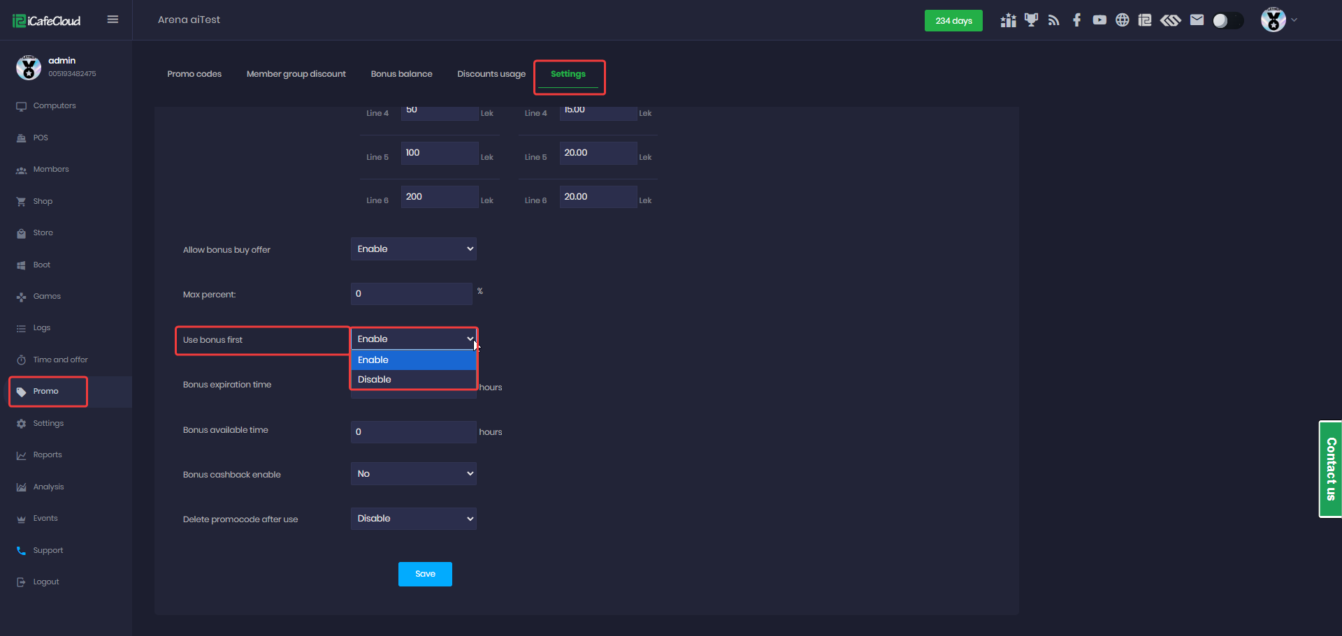- Navigate to the Promo page - Settings. Under "Use Bonus First," select either "Enabled" or "Disabled."(Figure 1)