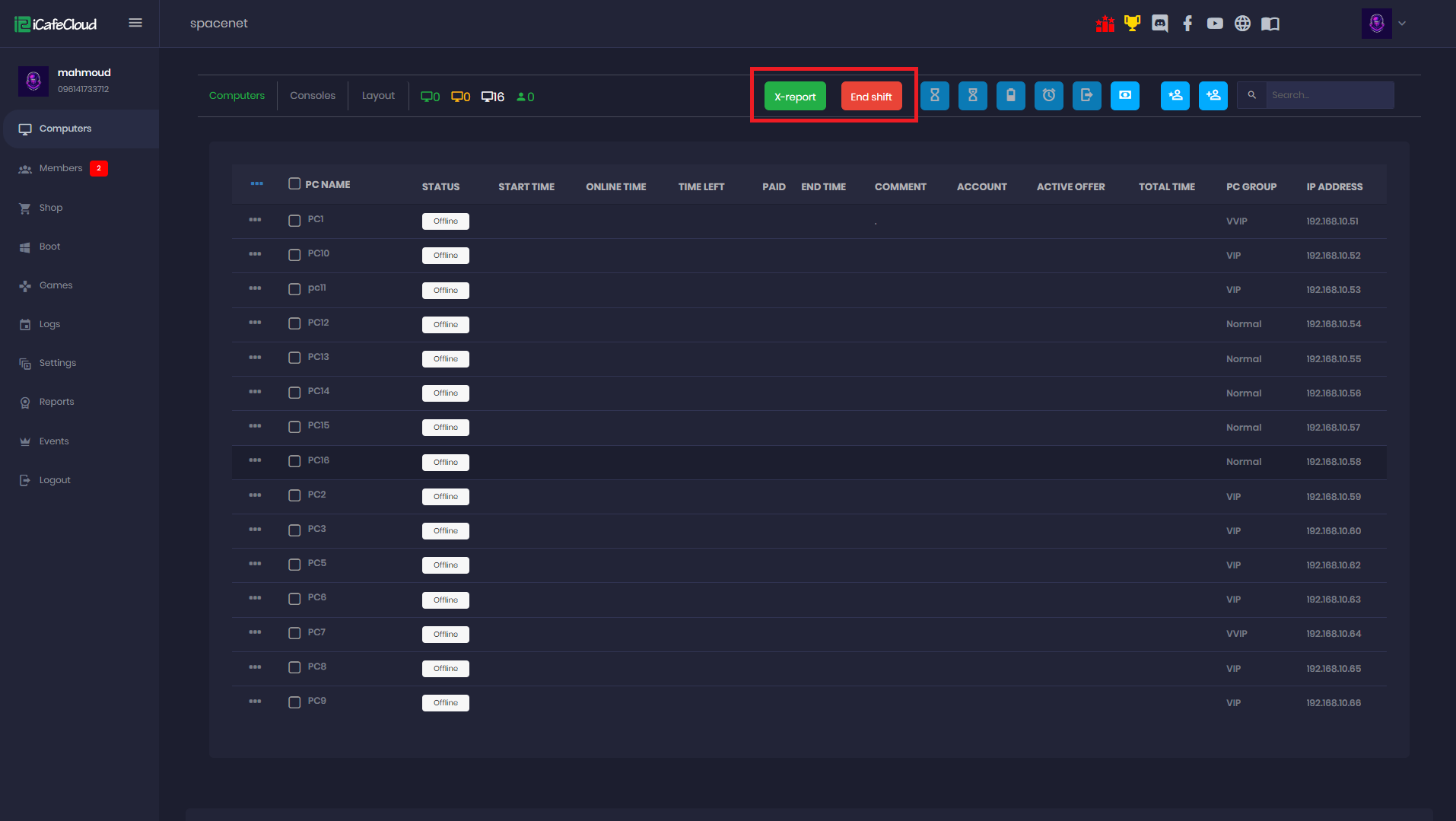 Pressing X-report generates a report from the beginning of the shift until the moment it's pressed without ending the shift, while "End Shift" generates a similar report but closes the shift, applicable only to staff accounts, where the KKM report can be printed as much as desired.